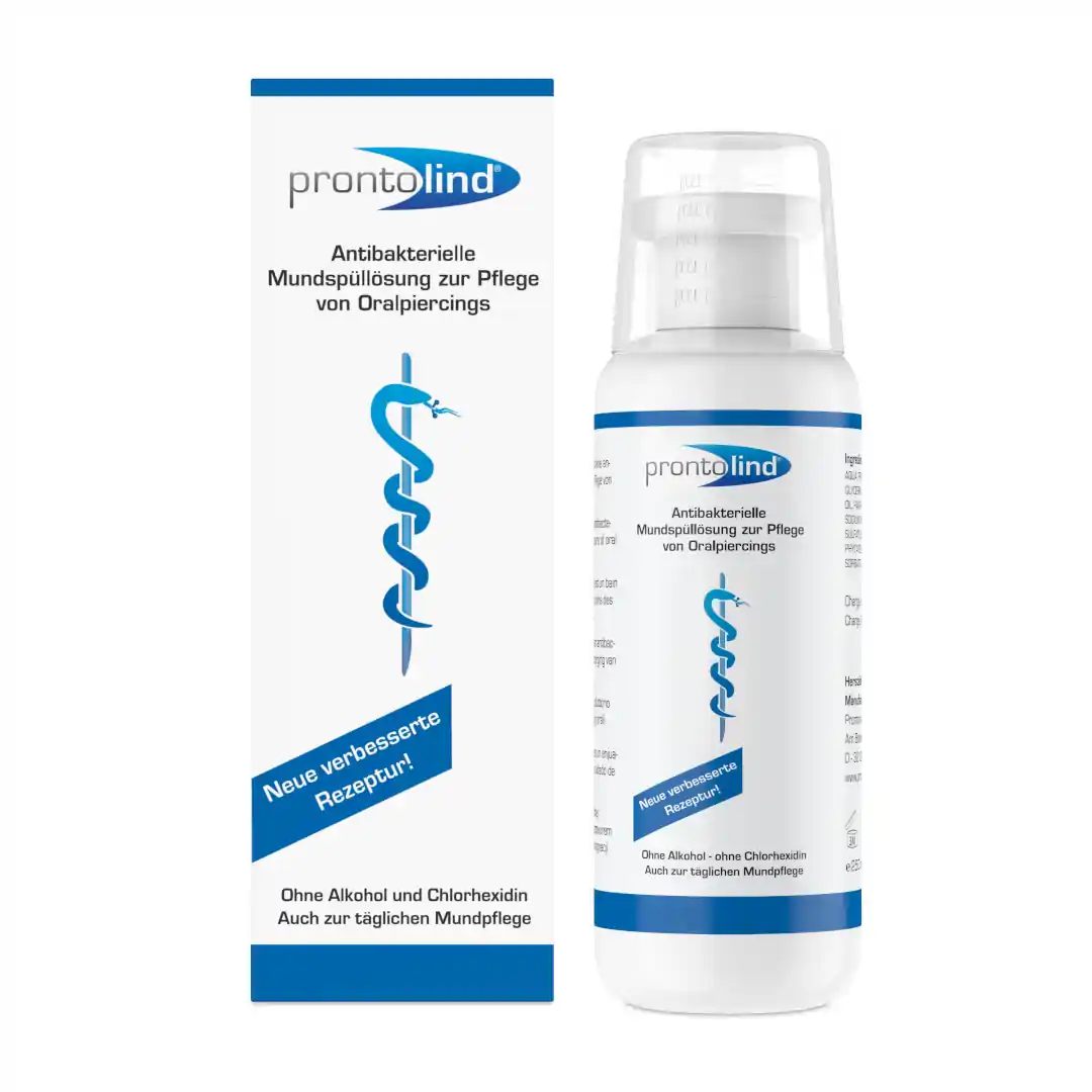 Prontolind Mundspüllösung je výplachová starostlivosť určená pre ústnu hygienu a starostlivosť o piercing v ústach.